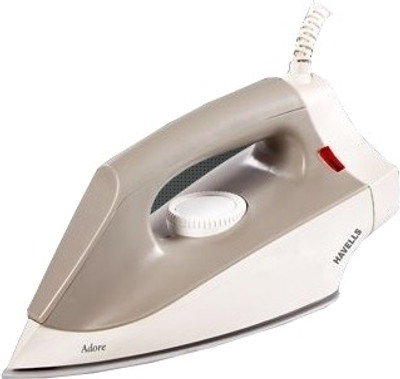 The Havells Adore consumes a maximum power of 1000 W for better performance. It is recommended to use an iron with high power wattage for fast heating. The voltage required for smooth functioning of this Havells iron is 230 V. The Havells Adore features a temperature indicator lamp for thermostatic operations. This light glows when the iron is plugged and goes off when iron has reached the required temperature.Product Category= Home & Kitchen>Home Appliances>Irons