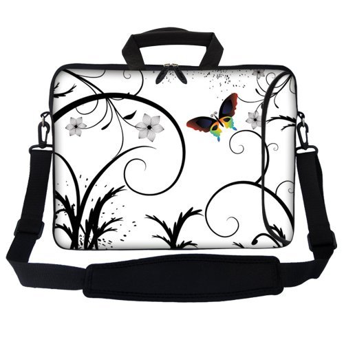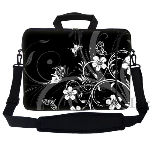 Meffort Inc 17 17.3 inch Neoprene Laptop Bag Sleeve with Extra Side Pocket Soft Carrying Handle & Removable Shoulder Strap for 16 to 17.3 Size Notebook Computer - Black White Flower Butterfly Design- Amazon- Electronics at Lowest Prices