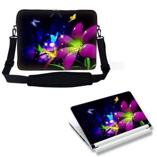 Meffort Inc 15 15.6 inch Laptop Carrying Sleeve Bag Case with Hidden Handle & Adjustable Shoulder Strap with Matching Skin Sticker Deal - Blue Purple Flower Butterfly Design- Amazon- Electronics at Lowest Prices
