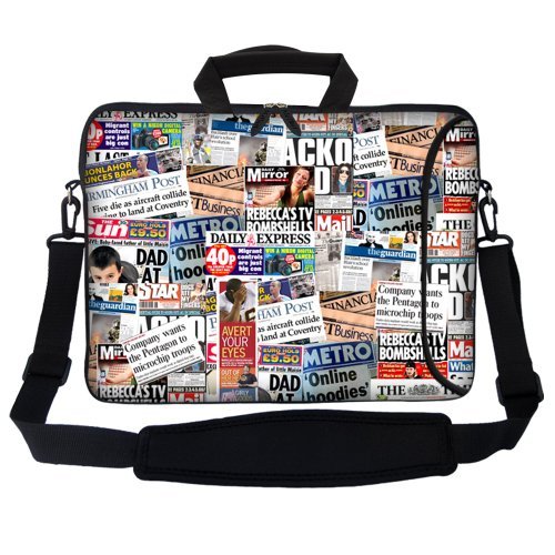 Meffort Inc 15 15.6 inch Neoprene Laptop Bag Sleeve with Extra Side Pocket Soft Carrying Handle & Removable Shoulder Strap for 14 to 15.6 Size Notebook Computer - Newspaper Design- Amazon- Electronics at Lowest Prices