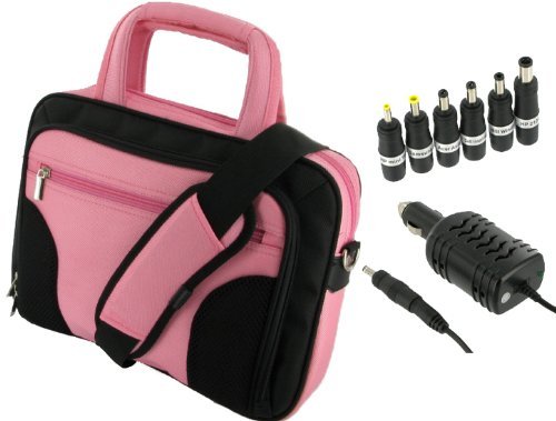 rooCASE 2n1 Netbook Carrying Bag and 12v Car Charger for Toshiba Mini Notebook NB255-N246 10.1-Inch Black (Deluxe Series - Pink / Black)- Amazon- Electronics at Lowest Prices