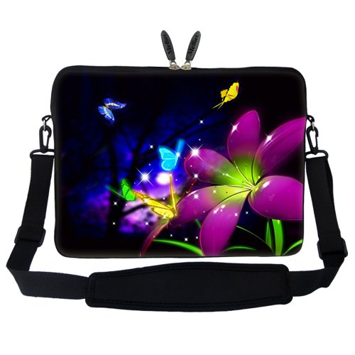 "Editorial Review These premium unique designed neoprene sleeve bags are the ultimate for sophisticated on-the-go users. It protects and stores your Laptop MacBook security. Unique image appears on both sides of the neoprene sleeve case with matching skin sticker (not included) They are made from durable neoprene that is naturally tear and damage resistant. The interior is also neoprene so it naturally offers a level of non-scratch padding. The reinforced dual zippers will keep your device secure and safe. Slim lightweight and portable so it ll fit into your bag backpack messenger bag or use it as a carrying bag by itself. Laptop compatible models: Acer Aspire Aspire Ethos Aspire TimelineX TravelMate s 17 17.3 or 17.4 screen size Asus All 17.3 screen size laptop Dell Latitude Precision Studio Vostro XPS s 17 17.3 or 17.4 screen size HP All 17.3 screen size laptop Lenovo All 17.3 screen size laptop Sony All 17.3 screen size laptop Toshiba All 17.3 screen size laptop and More... Features 1) Hydrophobic (water resistance) neoprene material w. reinforced dual zipper to secure your device 2) High quality printing on both side of the bag with laptop edge guard 3) Item can be use as shoulder bag w. strap in use or can be use as carrying bag (Hidden Handle) or Sleeve 4) Note: zipper will not close fully when hidden handle is in use but it doesn t affect functionality 5) Matching Skin Sticker available (Not Included) Specification Binding : Electronics Brand : Meffort Inc EAN : 0765573880922 Label : Meffort Inc Manufacturer : Meffort Inc Model : ZStrap2703 PackageDimensions_Weight : 0.85 pounds PackageDimensions : L:17.20 X W:12.20 X H:1.40 ProductGroup : PC Accessory ProductTypeName : CARRYING_CASE_OR_BAG Publisher : Meffort Inc Studio : Meffort Inc Title : Meffort Inc 17 17.3 inch Laptop Sleeve Bag Carrying Case with Hidden Handle and Adjustable Shoulder Strap - Blue Purple Flower Butterfly Design
