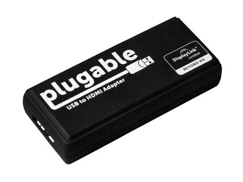 "Editorial Review Featuring the latest and highest performance USB graphics technology in the smallest package available the Plugable USB 3.0 to HDMI DVI graphics adapter lets you connect additional HDMI or DVI displays to your Windows-based laptop or desktop via SuperSpeed USB 3.0 or USB 2.0. Add up to six additional displays with USB s plug-and-play ease. One adapter required per display. Multiple monitors enhance productivity by enabling the use of separate monitors for different documents or applications for more efficient multitasking and document editing. Specs and Performance Highest available USB graphics performance on both USB 3.0 (5 Gbps) and USB 2.0 (480 Mbps) using DisplayLink s new DL-3500 chipset. USB graphics uses your system s CPU and GPU for graphics rendering. We recommend playing motion video and 3D games on your main GPU attached display. No HDCP protected video content. Audio over HDMI when the adapter is the default audio device. Supported Operating SystemsWindows 8.1 8 7 64 32-bit XP SP2+ 32-bit only. Mac not supported due to significant OS X limitations. USB graphics requires dual core or 2 Ghz or better CPU for best performance. Requires Intel AMD nVidia main GPU and driver with Windows Aero enabled. Different USB graphics drivers types (DisplayLink MCT Tritton SMSC Fresco) are not compatible on the same system (uninstall other USB graphics driver types). Not compatible with ARM-based Windows (MS Surface) or Windows RT. Vista Home Basic Win7 Starter Edition do not support multiple monitors. No supported drivers are available for Linux at this time. In the Box Plugable USB3-HDMI-DVI graphics adapter 39-inch USB 3.0 cable (compatible with USB 3.0 and USB 2.0 ports) HDMI-to-DVI converter accessory user manual drivers CD quick install guide Features 1) Connect up to six HDMI or DVI monitors to Windows-based laptops or desktops (one adapter required per monitor) 2) Highest performance USB graphics solution available. Combines bo