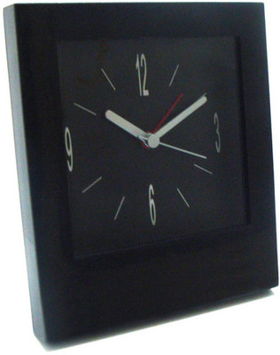 This black analog clock looks sophisticated and gives your room a classy look. Made of plastic, this table clock is durable and comes with four display hands.