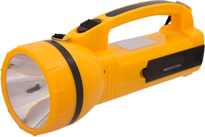 2 in 1 LED emergency light torch with 2w light focus and 10smd night light. The torch has a Bright Yellow color which make torch much stylish. It is a handle torch with ON/OFF button on the handle. It also has a two pin for a charging to work for a long time. It is a Medium size torch with a handle rope. it also have small Red indicator near the face of the torch indicating the status of the charge.