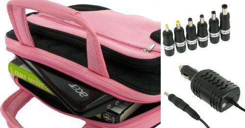 rooCASE 2n1 Netbook Carrying Bag and 12v Car Charger for Aspire Timeline AS1810T-8488 11.6-inch (Deluxe Series - Pink / Black)- Amazon- Electronics at Lowest Prices