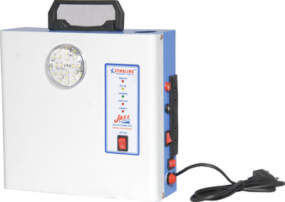 Starline���s Jazz Super , compact, portable and easily mountable, is an economical solution to all your power problems and easy-to-install This Jazz super a compact system with one 7.2/12v S.M.F in-built battery and a controller to protect the battery from overcharging or deep discharge.Jazz Super directly connected to the main electricity supply.This electricity is stored in the battery and used for lighting whenever required. This Jazz Super comes with a 3Watt LED lamp consisting of 12 LEDs . This lamp consumes 3W nominal power and is more luminous than a CFL or a tube light. This LED lamps have a longer life of approximately upto 10,000 hrs.There are three out put socket by which you can light three CFL in one time to lighten your home , or can use mobile charger to charge you mobile . The Starline's Jazz Super can be used at many different locations ��� homes,Shops, walkways, verandahs, and balcony . This Product is available for corporate gift .