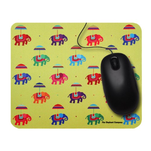 The Flying Elephants design is a multi coloured collage of the traditional and beautifully decorated Indian umbrellas and embroidered parasols atop the regal Indian Elephant. This design is inspired from carousels at carnivals, which are cheerful, colourful and bright. The Flying Elephants design, with the simple elegance of its polka dotted background creates a contagious vibrant energy. TEC has created this fun design to add a dash of stimulating joyfulness and excitement to The rubber back up of the mouse pad prevents it from sliding. Also available in green, black and red, this is a great gifting idea for computer users to keep the mouse rolling in style with TEC!