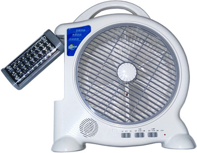 Tuscan powerful rechargeable fan with LED emergency light. 32 LED's. High battery backup. 5000mah powerful battery. With inbuilt FM, USB port and Memory card slot.