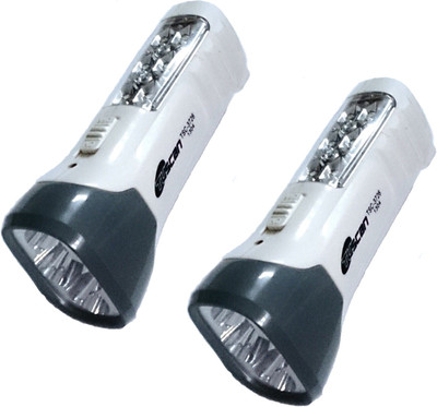 Tuscan 10 LED rechargeable torch with backup upto 9 hours. 4 LED focus torch plus 6 LED Emergency Light. Built in charger. Set of 2Pcs.