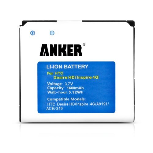 Upgrade via replacement.We wouldn t give you anything less than the best. Grade A cells chosen from among the top 10%. Rigorous inspection tests to ensure reliability. A built-in IC chip to prevent against short-circuiting. What does this all mean? In terms of quality you won t find a better replacement. Don t just take our word for it though - type in any quick power-related search on Amazon and see who pops up. As the leader in our industry for the last 3 years running we know batteries.While you re at it...For the fastest and most reliable charging of your smartphone and other devices consider Anker s new line of 18W adapters available for both car and home.Get to know us.Here at Anker we re dedicated to making the smart life easier. As a Top Rated Brand on Amazon we ve established ourselves as a leader in the field bringing innovative and reliable technological solutions to millions of users across the globe. Our Astro line of external batteries has been voted #1 in class by thousands of online reviewers and praised by tech bloggers while our renowned customer service team has made us a fan-favorite across the web. With every sale we include an 18-month worry-free guarantee to demonstrate the importance we set on quality. After all we re customers too.Compatible Models:HTC Desire HD(G10) Surround 7 T8788 Inspire 4G ACE Features 1) Tested under strict quality control standards. CE and ROHS certified. 2) Grade A cells ensure longer battery life (500+ cycles) and high-speed efficient charging. 3) Built-in IC chip prevents overcharging. Guaranteed to fit your phone. 4) Voltage: 3.7V. Capacity: 1600mAh. 5) Package contents: 1 x cell phone battery 1 x manual