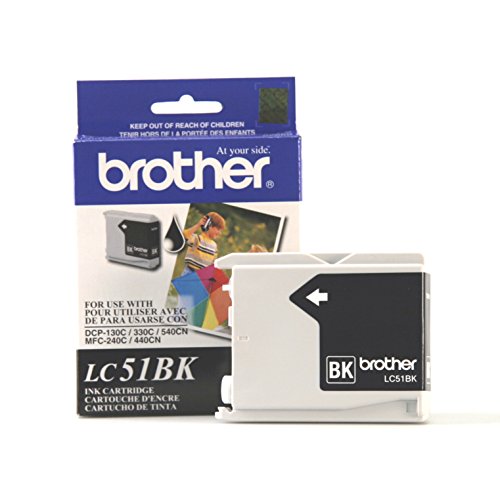 Brother Blk Ink MFC240c 440cn 665cw BLACK INK CARTRIDGEfor the Fax1860c FAX2480c and MFC240c MFC440cnMFC665cw MFC3360cn MFC5460cn MFC5860cn DCP130c. Features 1) Brother Innobella Black Ink Cartridge 2) For use with select Brother Printers 3) Offers up to a 500 page yield Specification Binding : Office Product Brand : Brother Color : N Department : Printers EAN : 0956260313537 Format : CD-ROM HardwarePlatform : Pc Label : Brother LegalDisclaimer : https: images-na.ssl-images-amazon.com images G 01 abis-ui buttons calendar.gif Manufacturer : Brother Model : LC51BK OperatingSystem : Windows PackageDimensions_Weight : 1.50 pounds PackageDimensions : L:9.40 X W:4.80 X H:4.70 Platform : Windows ProductGroup : CE ProductTypeName : INK_OR_TONER Publisher : Brother SKU : EP5355128 Studio : Brother Title : Brother Innobella LC51BK Ink Cartridge 500 Page Yield Black