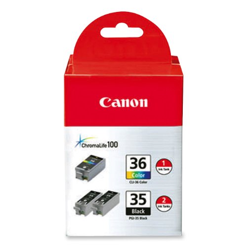 (2) PGI-35 Black Inks (1) CLI-36 Color Ink Features 1) Improved convenience for mobile printers 2) Equipped Smart LED function 3) Pigment black ink for enhanced text quality Specification Binding : Office Product Brand : Canon Color : Y Department : Printers EAN : 0660685004856 Format : CD-ROM HardwarePlatform : Pc Label : Canon Manufacturer : Canon Model : 1509B007AB OperatingSystem : Windows PackageDimensions_Weight : 0.20 pounds PackageDimensions : L:4.50 X W:4.10 X H:2.30 Platform : Windows ProductGroup : CE ProductTypeName : INK_OR_TONER Publisher : Canon SKU : bf2012-09-10-1060 Studio : Canon Title : Canon PGI-35 Twin Black CLI-36 Color Ink (1509B007AB AE)