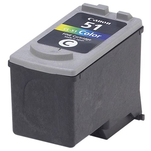 For Long Lasting Beautiful Photos The CL-51 from Canon is a high-capacity color ink cartridge that delivers rich color for bright images and accurate skin tones. Compatible with Canon Pixma iP2200 iP6210D iP6220D MP150 MP170 and MP450 printers the CL-51 uses ChromoLife100 technology to optimize print quality when used with genuine Canon photo papers. The resulting prints resist color fading for long-lasting beautiful photos for years to come. In addition the CL-51 includes ink remaining notification technology which means you ll always know when it s time to replace your ink cartridge. Features 1) High-capacity color ink cartridge produces vivid prints 2) Rich color inks for bright images and accurate skin tones 3) ChromaLife100 system optimizes print quality when used with genuine Canon photo papers 4) Resists color fading for long-lasting beautiful photos 5) Ink remaining notification technology Specification Binding : Office Product Brand : Canon Color : Y Department : unisex-adult EAN : 0013803051285 Format : CD HardwarePlatform : PC Label : Canon LegalDisclaimer : Warranty does not cover misuse of product. Manufacturer : Canon Model : 0618B002 OperatingSystem : N A PackageDimensions_Weight : 0.25 pounds PackageDimensions : L:3.40 X W:2.20 X H:1.50 ProductGroup : CE ProductTypeName : INK_OR_TONER Publisher : Canon Size : null SKU : 4-CL51 Studio : Canon Title : Canon CL-51 High-Capacity Color Ink Cartridge