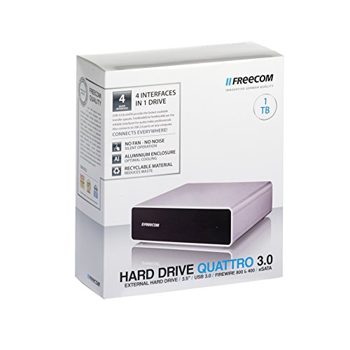 The Hard Drive Quattro is Freecom's most versatile hard drive. With four interfaces (US 3.0, FireWire800, FireWire400, eSATA) this hard drive connects to any computer or Mac. The FireWire interface makes it the ideal hard drive for Mac users who require a fast and reliable drive for storing and editing large audio, video and or graphical files.