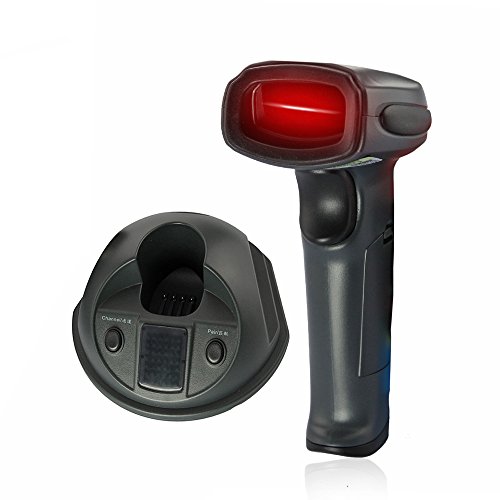 "Editorial Review This barocde scanner comes with a hloder it can hold the barcode scanner also it is a Inductive charging dock. When the barcode is out of power just put on the holder it will be charged for power automatically. Description: This scanner provides the computer system with exact useful and high-speed data type-in and whole solution of data conservation. With a receiver it is perfect for supermarket warehouse library bank and some other places. Features: 1. Advanced High-performance laser engine reliable wireless transmission 2. Easy installation and operation: receiver through the USB line butt computer can plug and play no drive. 3. Long range of scanning distance: in open environment wireless transmission distance up to 300 meters. 4. Wireless inductive charging no need to plug it can charge laser strong decoding scanning ability. 5. Reliable transmission: send and receive of each packet will need cycle interlaced check to ensure the accuracy of the data transmission and there were no data error and missing. Specifications: 1. Light Source: 650nm Laser 2. Frequency: 433MHz 3. Scanning trigger mode: manual operation 4. Bit error rate: 1 3 million 5. Barcode type: UPC-A UPC-E Industrial 2 of 5 EAN8 EAN13 Code 128 EAN128 Code39 Code93 Codabar125 and All one dimensional barcode. 6. Communication Distance: up to 300 meters in open environment 7. Supported interface: keyboard RS-232 USB 8. Reading Speed: 100 times second Package contents: 1 Wireless scanner 1 Receiver Charging Socket 1 Antenna 1 USB Cable 1 user manual Features 1) 1. Advanced High-performance laser engine reliable wireless transmission. 2) 2. Easy installation and operation: receiver through the USB line butt computer can plug and play no drive. 3) 3. Long range of scanning distance: in open environment wireless transmission distance up to 300 meters. 4) 4. Wireless inductive charging no need to plug it can charge laser strong decoding scanning ability. 5) 5. Re