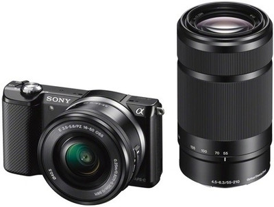 Sony ILCE-5000Y with SELP1650 & SEL55210 Lens Mirrorless Camera Black- Flipkart Online Camera Sale