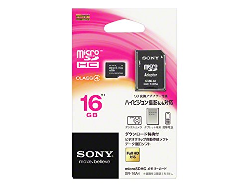 Sony 16GB Micro SD HC Memory Card Class 4 with Adapter The 16GB microSDHC Memory Card now supports full HD video recording, with free software (Memory Card File Rescue and x-Pict Story for Memory Card) available for free download separately. 16GB capacity Supports full HD video recording Free Software download (Memory Card File Rescue & x-Pict Story for Memory Card) microSD adaptor included Class 4 Warranty 5 years