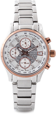 A solid stainless steel band keeps your precious timepiece fastened to your wrist without the slightest discomfiture. The cumbersome process of wearing and removing the watch is eased due to the presence of a fold over clasp, which enables you to take the timepiece off your wrist just by pressing a button.