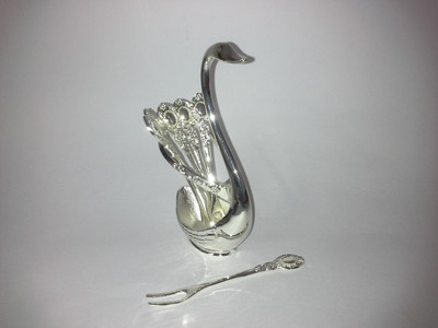 German Silver Swan with 6 Spoons