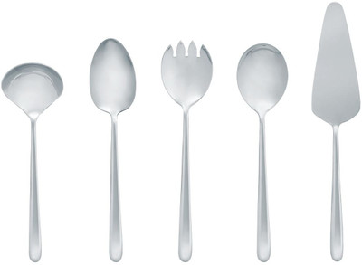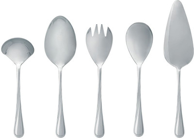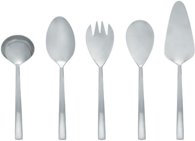 On the face its a slim and slender model, but you immediately feel that you have quality cutlery in your hands. Ibiza cutlery has a sleek sophisticated design, but is surprisingly heavy in the hand. Elegant appearance with a sense of luxury. The Ibiza cutlery comes in a beautiful gift box.. It is a Stainless Steel Product and it comprises of 2 Serving Spoon, 1 Salad Spoon, 1 Salad Fork, 1 Sauce Ladle, 1 Cake Server