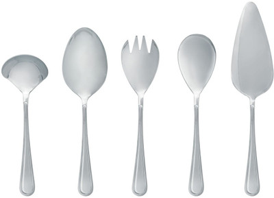 Modern, but not too pronounced trendy. That makes Palazzo a timeless cutlery. This design fits in any setting, on a white damask tablecloth, but also on a rough wooden kitchen table. The Palazzo cutlery comes in a beautiful gift box.. It is a Stainless Steel Product and it comprises of 2 Serving Spoon, 1 Salad Spoon, 1 Salad Fork, 1 Sauce Ladle, 1 Cake Server