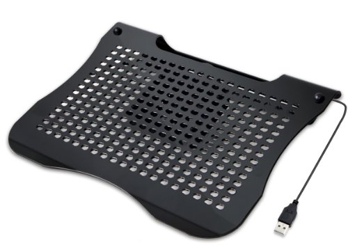 Cool up to 17 laptop with single 160 mm quiet fan. Also 1 built-in extra USB port for keyboard mouse. Features 1) 2 Adjustable Levels to Maximize Comfort 2) On Off Button 3) Dimension: 13.5 x 12.5 x 1.25