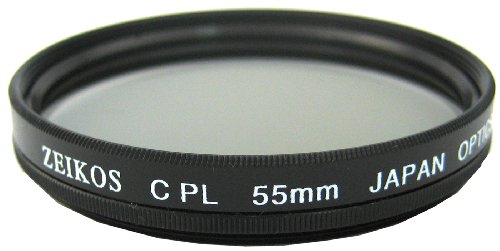 Zeikos 55mm Glass Multi Coated Circular Polarizing (CPL) filter to protect your lens and decrease reflections on water and glass as well as increasing the blue of the sky and other colors in your scene. Black metal rings. Features: 1) Eliminates most reflections 2) Whiten clouds and darken your skies!